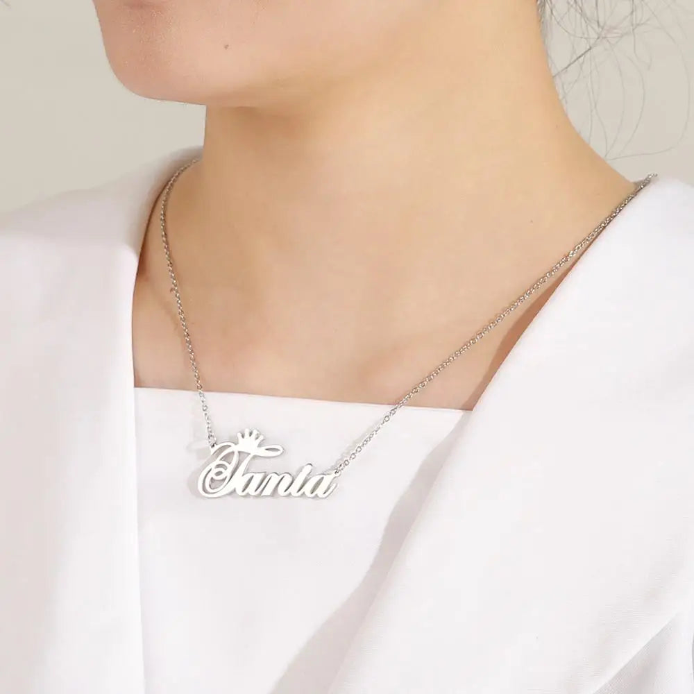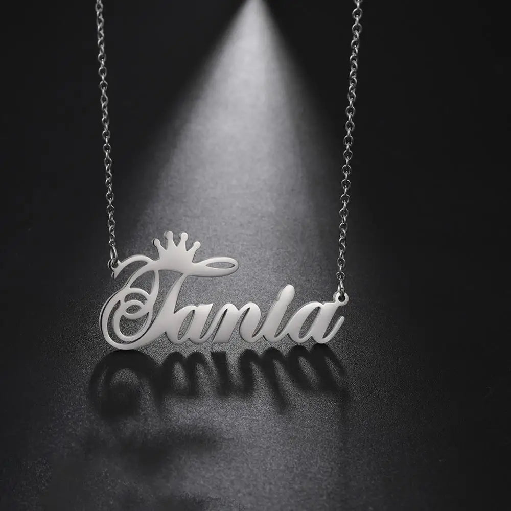 Custom Name Necklace Personality Crown Stainless Steel Necklace for Women Man Customized Jewelry Girlfriend Gift Steel